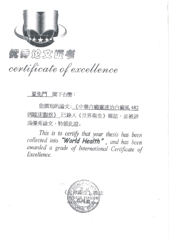 (4)主治病种特别:经四川省科技厅组织的专家委员会科技成果鉴定,结论为“研究结果达到国内同类研究先进水平”。主要用于毛囊炎,生殖器疱疹等,此属目前国际国内常见而多发的皮肤病性病,病员急需此药救治。临床用于众多的特殊疑难病症,效果特好。