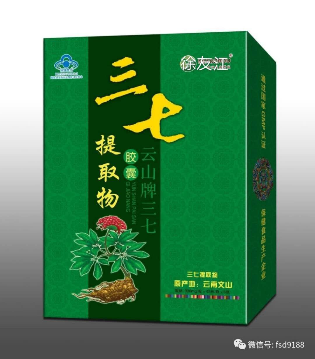 “三七提取物”精选云南文山的二十五头以上文山三七为原料,采用超微粉碎技术,真空干燥技术,打破细胞壁,有效成分充分释放,三七提取物、三七粉二者协同作用能抑制有害成份溶出,提高有效成份收率及稳定性。三七提取素,它是采用传统的三七粉制作方法与现代微粉技术相结合所制取的三七创新产品;其细度达 350 目,总皂苷含量在 7%,活性,细腻,破壁,易吸收,其吸收率高达 88%左右(普通三七粉,粗糙,不易吸收,其吸收率小于 35%左右);三七提取素其作用过程温和稳定无副作用,长期服用能清洁血液,疏通血管,从源头上治疗病症,改善体质,增强人体自我保护和自愈能力;形成抵抗力强,不易生病的体质。三七提取素是当前技术含量最高的三七保健产品。