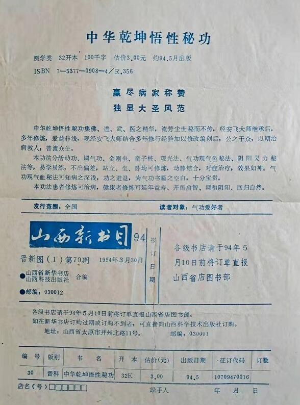 6、1989年中华气功杂志第一期发表了“观光法”佛道内功禅修的高级秘法精华。
