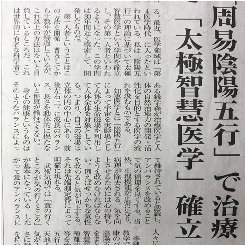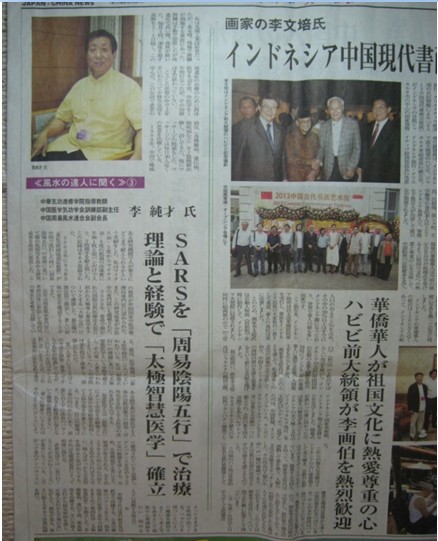 2013年9月参加日本《世界健康气功易经武道大会》演讲并开办《智慧医学》培训班,荣获《太极智慧医学》的确立,创始第一人之荣誉,并刊登在人民日报海外版2013年11月29日的【日中新闻】上!
