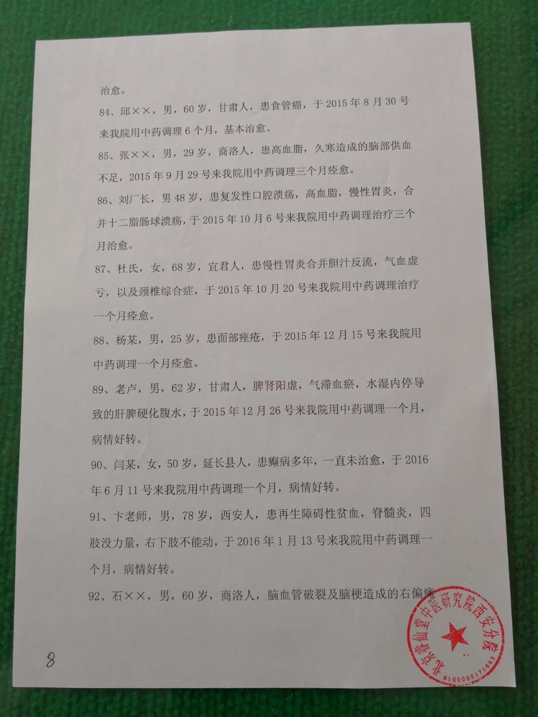 擅长调理:癫痫,心脑血管导致的偏瘫,半身不遂,久婚不育,肺气肿,气管炎,糖尿病,癌肿瘤,白血病,血友病,精神病,风湿,增生,皮肤病,妇科病,肝胆、脾肾、肠胃疾病,高血压,低血压,性病,白发,脱发,痔疮,痤疮,红斑狼疮,黑斑,黄斑,烧烫伤,五官病,肾病,颈椎病,美尼尔氏症,席汉氏综合症,艾迪氏综合症,帕金森,白塞氏病,班替氏综合征。