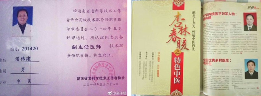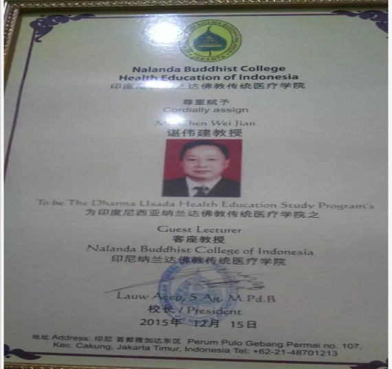 谌伟建医师还是一名优秀的共产党员,他真心将自己当成人民群众的公仆,对待患者如对待家人一般,用心践行着一位医者、党员的仁者之心。他目前仍兼任印尼纳达佛教医疗学院(传授中医特色诊断与治疗)客座教授;世界医学研究中心中国传统医学研究院副院长、教授;《中华传统医学领军人物》理事会首席专家;全国卫生产业企业管理协会医药技术开发专业委员会专家委员;中国医药科技网高级临床研究员;鸿济堂(北京)国际医学研究院专家委员;《医圣张仲景经方临床应用大典》编委会副主编、执行主编。《科教兴国》丛书编委会副主编;《创新中国的时代先锋》、《引领时代的中国学者》、《中国中医药技术创新金鉴》编委会特邀编委;常德市武陵区老科协、保健协会理事,卫生分会常务副会长,武陵老年保健责任编辑;常德市武陵区健康教育所中医养生保健讲师;常德市武陵区白马湖社区卫生服务中心中医主任医师等职。他的医德医风影响着越来越多的人,他堪称当代医学工作者的榜样!