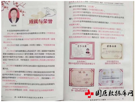 瑞德针灸专家徐世传历年荣获荣誉及证书