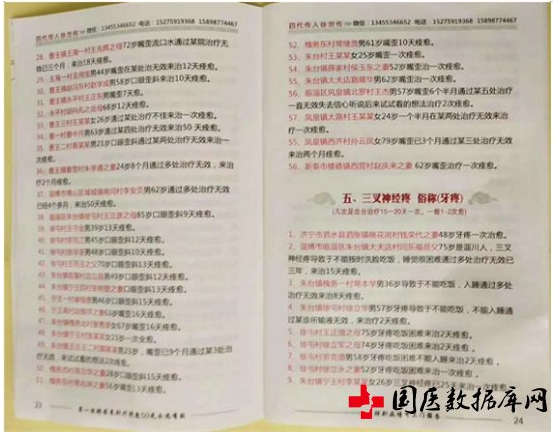 三,三叉神经疼(牙疼):吊线风(面瘫):鼻炎咽炎沙哑,胃疼胃胀一般1至2次愈。