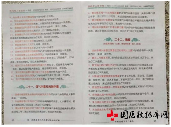 1.淄博市临淄区朱台镇徐屯村崔乐成之母 63 岁煤气中毒不省人事不说话,一次治愈。