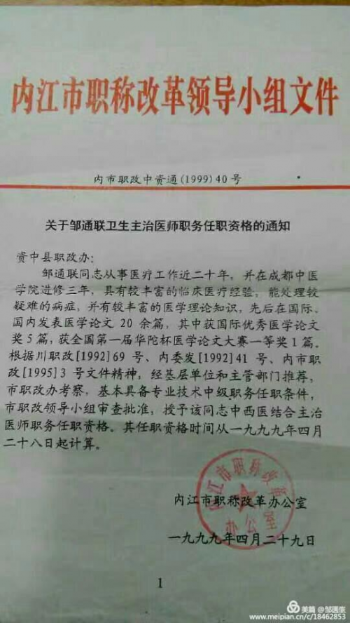 邹通联,男,四川省,资中县人,出生于一九五四年二月。四代医学世家,一九六九年进入医学界,先后求学于资中卫校、资中人民医院、成都中医学院、江西九江专修学院。中西医结合专业,本科毕业。