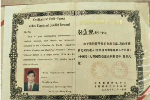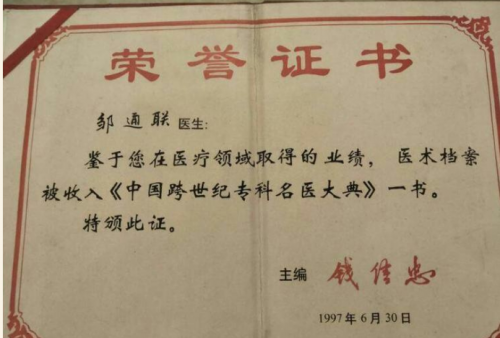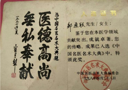 一九九七年获得世界医药研究中心颂发的《优秀医学专家》称号,并被聘为泰国世界传统医学研究会任《理事兼医学顾问》;一九九九年聘为香港国际中医药学院任《课题教授》;曾担任中国特色医疗与专病专方集粹一书任《编委》。