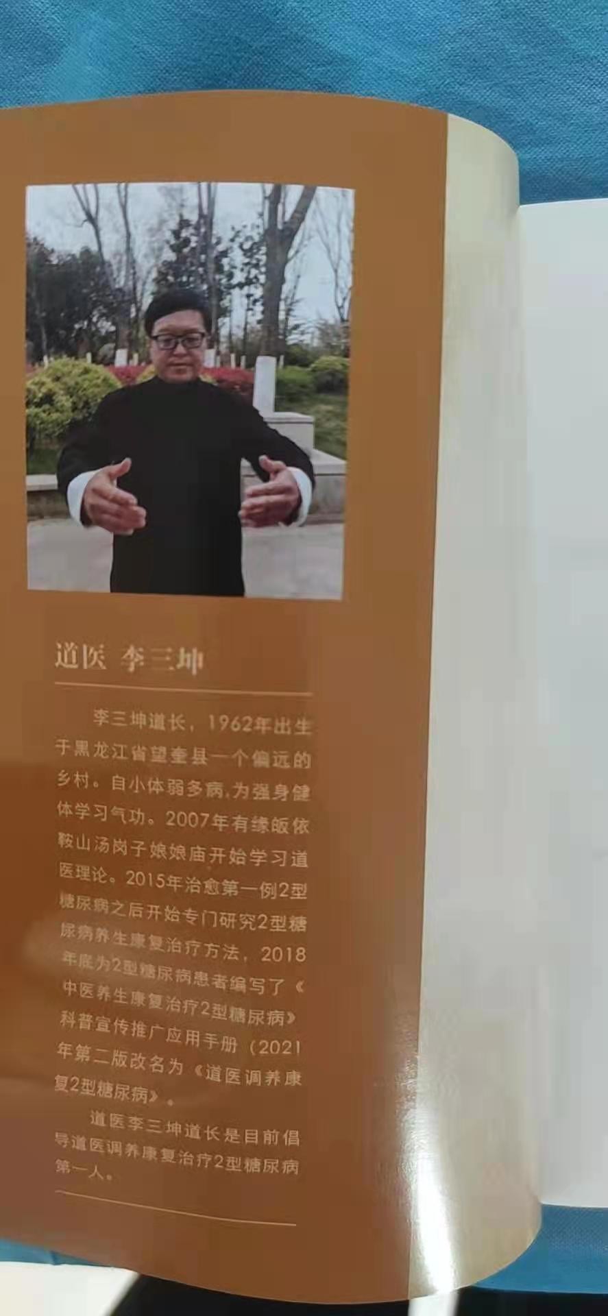 道医李三坤,1962年出生于黑龙江省望奎县一个偏远的乡村。自小体弱多病,为强身健体学习气功。2007年有缘皈依鞍山汤岗子娘娘庙开始学习道医理论。2015年治愈第一例二型糖尿病之后开始专门研究二型糖尿病中医养生康复治疗方法的中医基础理论研究,2018年底为二型糖尿病患者编写了《中医养生康复治疗二型糖尿病》科普宣传推广应用手册。道医李三坤道长目前是倡导中医养生康复治疗二型糖尿病第一人。