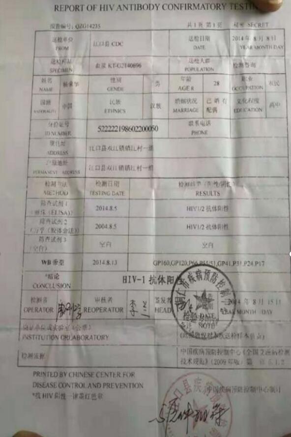 1、代应国,男,017年确诊HIV——1抗体阳性几经转折在张英杰诊所治疗,数月后医院检测报告转为阴性;