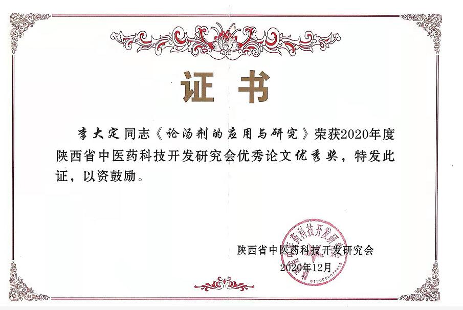 2018年度参加陕西省中医药科技开发研究会举办的中医药学术研讨会,其论文《论中药炮制与研究》在评审中荣获个人优秀第一名。