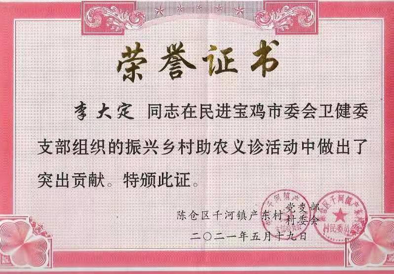2018至2019年期间自出资金数万元购买扶贫义诊物资及药品,并组织国医馆及市中医院专家在宝鸡陇县等贫困地区多次举行帮扶脱贫攻坚,健康扶贫义诊中多次给贫困户捐赠物资,帮扶脱贫中表现突出,并受到宝鸡市陇县广播电视台头条新闻多家报道,还受到陇县党委、政府及广大群众的一致好评,并被评为当地最美扶贫医务专家。