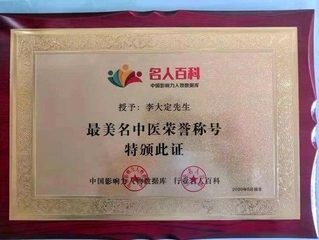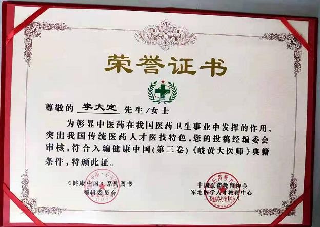 李大定幼承祖业,以医济世,曾得到龙门派道医真传,于2010年经国家公证机关公证。先后创办“龙门正骨堂”,“西府国医馆”、“保健康复馆”等医疗保健机构。