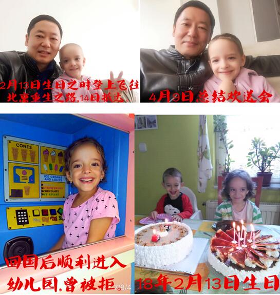 2014年(2岁)于匈牙利布达佩斯医院被确诊为白血病。之后2年每年进行为期2个月的化疗。15年化疗,无法喝水、进食七天;16年化疗,血液中毒。两次都濒临死亡。化疗期间,每两天抽一次血,做4次穿刺检查。每天做噩梦哭醒,对针筒、警笛、救护车声等异常恐惧。 2017年2月14日抵达北京接受中医意念气功自然康复。