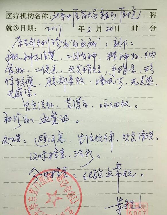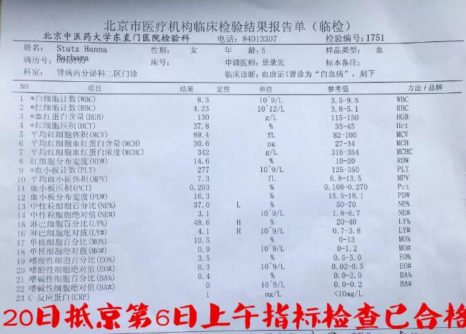 b、2017年2月20日赴北京中医大学东直门医院检查,指标恢复正常。