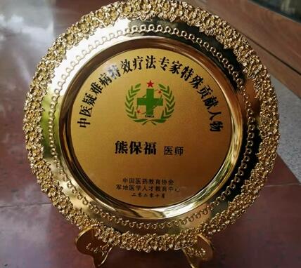 2020年10月,中国医药教育协会军地医学人才教育中心评为“中医疑难病特效疗法专家特殊贡献人物”。