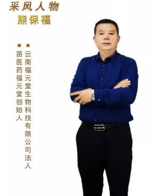 熊保福,云南省文山市人,熊氏苗医药第三代传承人,熊氏苗医药福元堂创始人,云南福元堂生物科技有限公司法人,中国民族医药学会壮医药文山州分会秘书长,壮医药文山州分会文山市工作站站长,云南福元堂中国国际苗医药健康科普宣传站站长,中国医药教育协会军地医学人才教育中心继续医学教育专家组第二届专家委员。