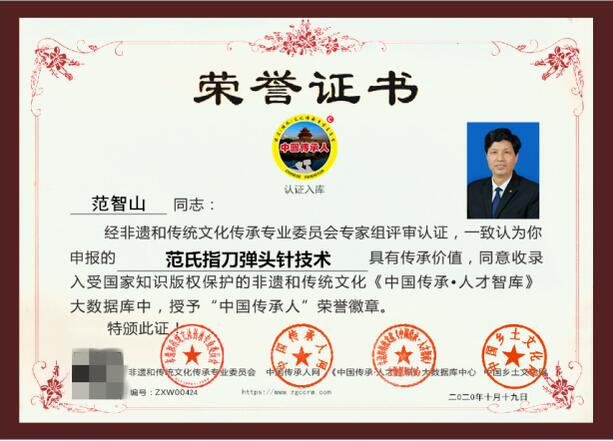 范智山为了将自己的所学所创传承和发扬,以此救治更多的患者,范智山创建了范氏技术专家团队,收徒授医一百多人,在范智山的带领下,应用范氏绿色疗法,为全国各地众多久治不愈的疑难杂症患者带来健康。