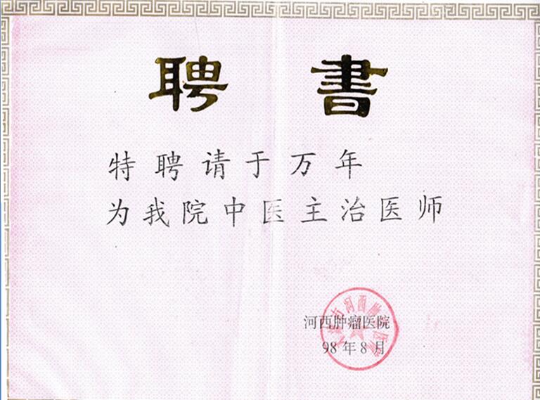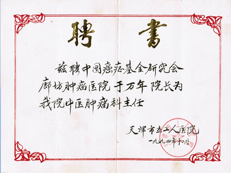 1994年,因具有技术专长:中医药治疗肿瘤疑难病症,入选全国中医药治疗疑难病症人才信息网络成员。