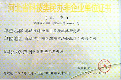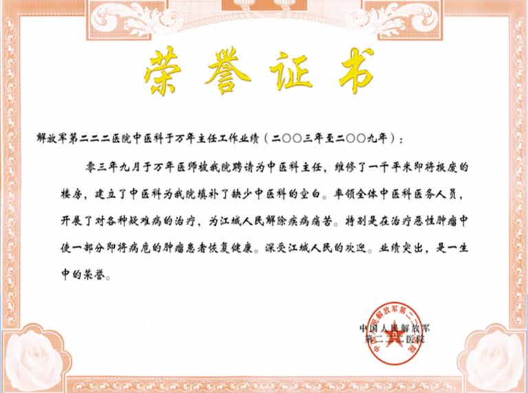 2007年,被全国著名特色医疗专家鉴定委员会评为中华医学临床研究特色专科专家并颁发证书。