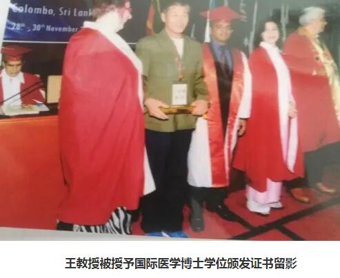 2013年l1月30日在斯里兰卡举办的第52届传统医学国际学术交流会(参会152个国家和地区)大会,表影中国大陆8位优秀中医师其中有王教授;