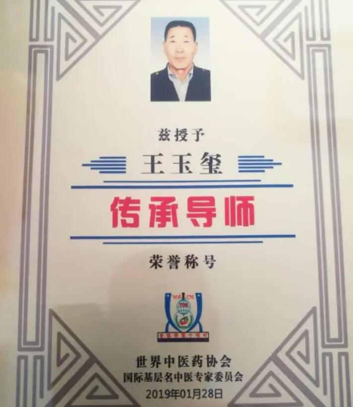 王玉玺,河北省赤城县人,中医全科,研究生学历,国际医学博士学位,乡村中医师。中国发明家协会会员,中国医疗保健国际促进会中老年保健专业委员会副主任委员,健康论道组织委员会委员,中国管理科学院新型产业研究所高级研究员,张家口地区行政公署先进扶贫工作者、中共赤城县委赤城县人民政府先进扶贫工作者、中国名人文化交流协会会员,中国国际经济技术合作促进会会员,世界杰出爱国华人商业联合会“实干兴邦—全国劳动英模与先进人物暨“中医疑难杂症中医泰斗”荣誉称号,中国管理科学研究院学术委员会高级研究员,中国管理科学研究院新型产业研究所高级研究员。王玉玺教授先后被载入《中华当代名人辞典》、《中国大陆名医大典》、《中国百科学者传略》、《中国中医名医名科名院品牌博览》、《中国专家人才库》、《共和国名医专家大典》、《中国发明人大全》第一卷、《中国名院名医名药》、《国医名师经验录》上下册,《蓬勃发展的中国中医药事业》、《中国创新智库》、《中华名医健康宝典》、《赤城县志》等书籍。