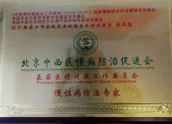 王教授1995年11月申请国家发明专利,2001年1月授予专利权,2002年在中国国际专利技术与产品交易会上被评为金奖。研制的植物降压茶对降低高血压预防脑血栓形成有明显效果,该茶荣获赤城县科技进步二等奖;