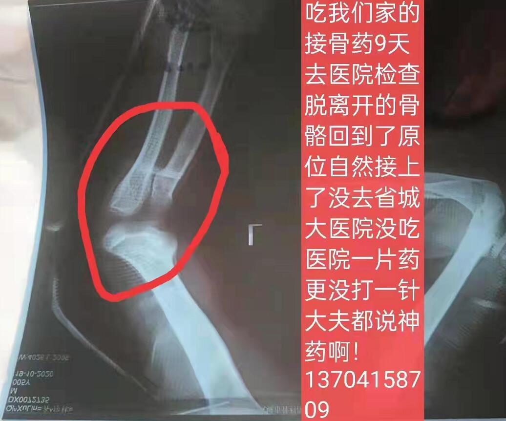 不一一列举了。很多年龄大的(特别是患有血糖高的)老年人髋骨骨折或者胫骨骨折或者股骨头处粉碎性骨折等等,因为年龄大,医院都束手无策的,用上了我们家的接骨药吃一个人好一个人。最安全的是:伴有心脏病血压高血糖高或者血压低.尿酸高.有痛风的人,服用此药随之而改善。