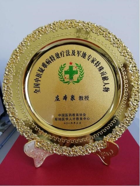 2019 年,获得中国医药教育协会、军地医学人才教育中心,颁发的“全国中医疑难病特效疗法及军地专家特殊贡献人物铜牌奖”;