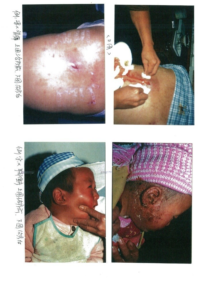 例1:董XX,男,7岁,游仙区石板镇,1995年因开水烫伤腹腰殿及右大腿1天,面积30%,浅Ⅱ度25%,深Ⅱ度5%施以暴露疗法。局部以其庆大霉素喷雾,外擦松柏油膏,2周后治愈出院。
