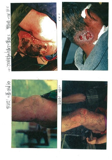 例5:汪XX,男,59岁,达县人,农。因右枕基底细胞癌3年。曾两次手术伤口不愈,面积为8×7×1.5cm2大小。溃疡面肉芽高突,腐溃出血,病检仍有癌细胞。不愿放化疗。于2005年1月6月来诊,局部给予止血散、绿丹水、三周后溃面缩小,出血停止,溃面有新生上皮覆盖50%,全身输以青霉素及大剂量维生素C,并内服中药开泄膀胱,春节前返老家调治。