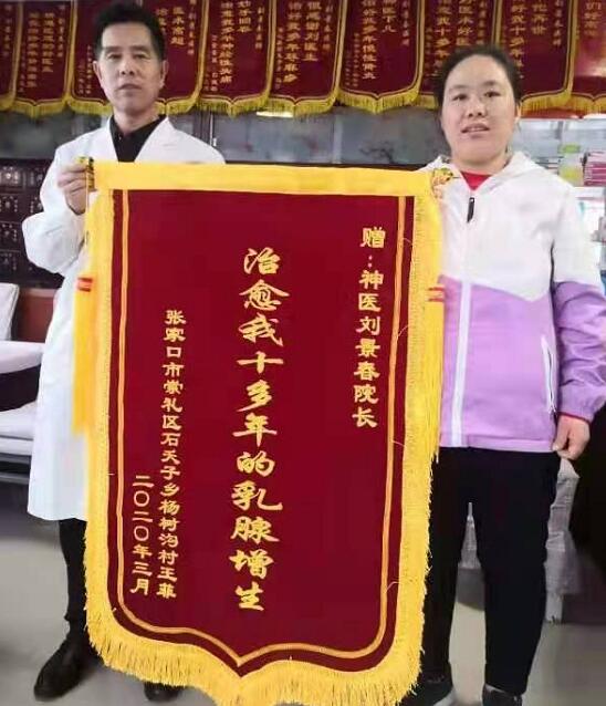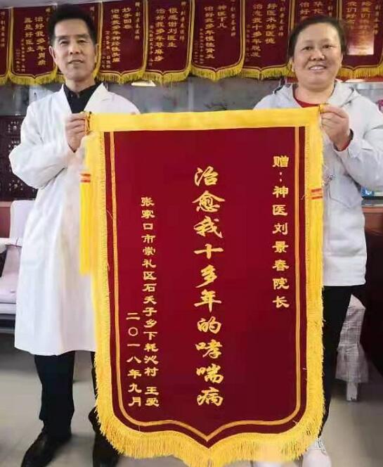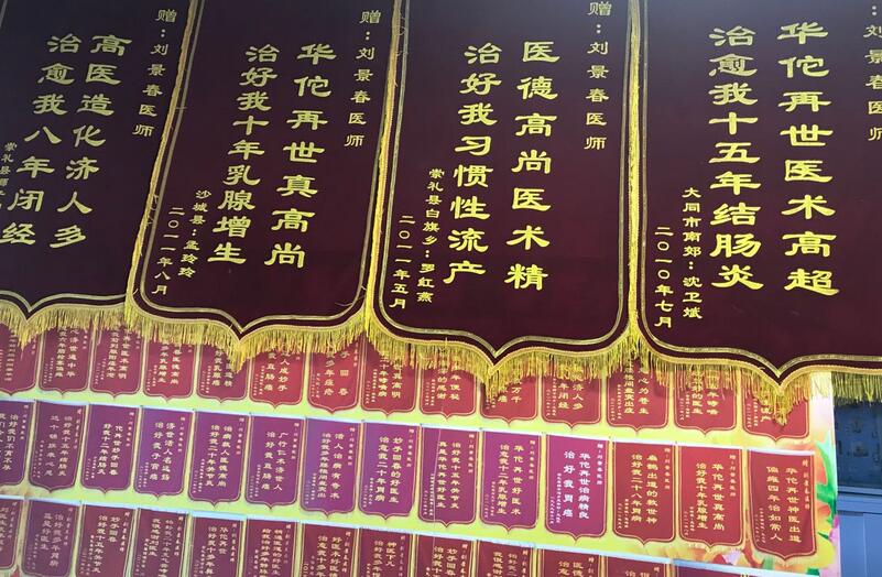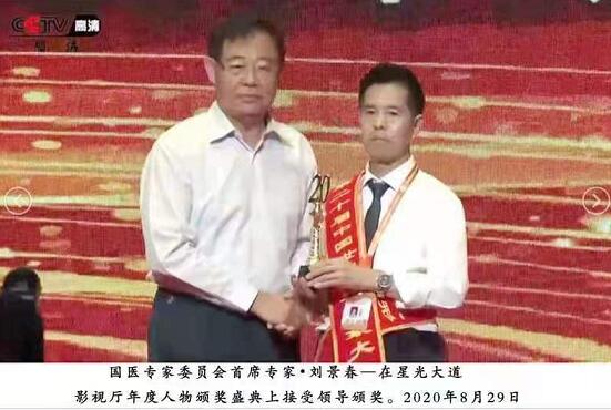 刘景春医生在30多年的临床治疗中,荣获中医界形象大使、中国当代最美名中医、 引领中医行业十大杰出贡献人物、中医疑难病特效疗法及军地专家特殊贡献人物、科研创新优秀成果贡献奖等多种荣誉证书和荣誉称号。曾受到十一届全国人大常委会副委员长周铁农的题词“光彩人生耀中华”荣誉牌匾。