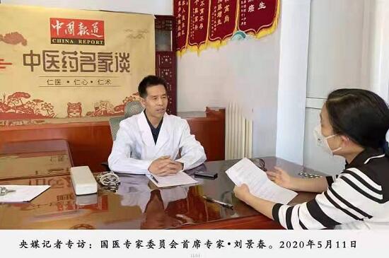 2020年5月11日央媒记者中国报道《中医药名家谈栏目组》专访了刘景春教授,并报道了刘景春医生的医者情怀。中央电视台主持人多次采访并报道了刘景春医生的医术医德。
