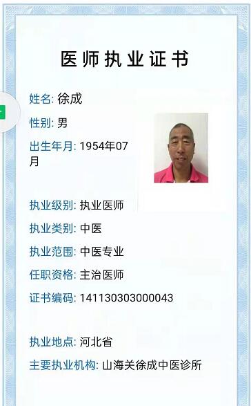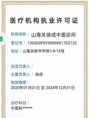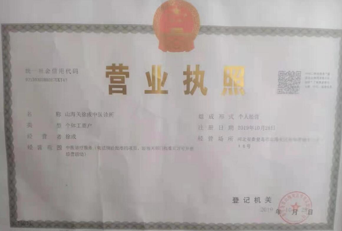 德顺兴起源自民国年间,由马玉山、蔡中和与徐观山三位老人于老山海关西街创立,后由徐观山老人继承德顺兴招牌。徐观山膝下有子徐成,自小受医药世家耳濡目染,立志行医济世,传承中华医术。在通过父亲徐观山老人的考验后,终继承德顺兴名号。经上级医疗机构批准和徐观山老父亲同意,徐成于1992年7月至1997年8月正式系统地学习了中医内科,妇科,儿科等专业医学,期满经秦皇岛市卫健委批准考试合格,获得医师资格,由于父亲年龄已高,便将山海关徐观山中医诊所正式更名为山海关徐成中医诊所。