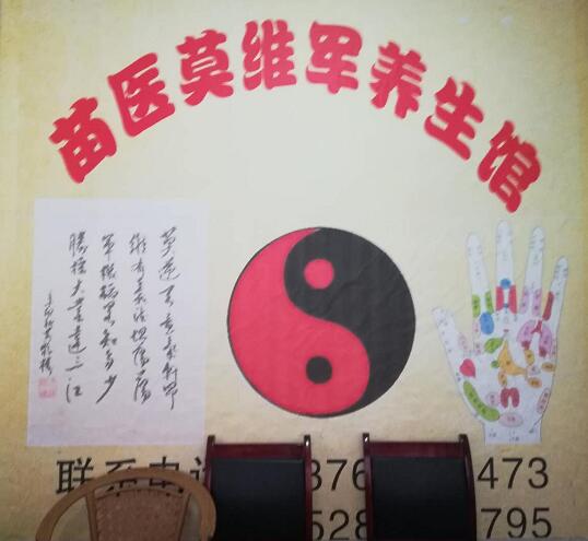 凯里被中国民族医药学会授予“苗侗医药养生之乡”的称号,2016年邀请一部分优秀的地方民族民间医师入驻而形成了苗侗医药文化一条街,目前已经有近百位地方名医挂牌营业,莫维军也是其中之一。他在医药文化街43号开设了“苗医莫维军养生馆”,养生馆以弘扬发展中华传统养生保健文化为己任,以促进全民健康为宗旨,通过开设健康大讲堂,研习服气辟谷、禅修正解、新胎息养生长寿法的方式开展健康养生服务,目前影响力得到不断扩展。