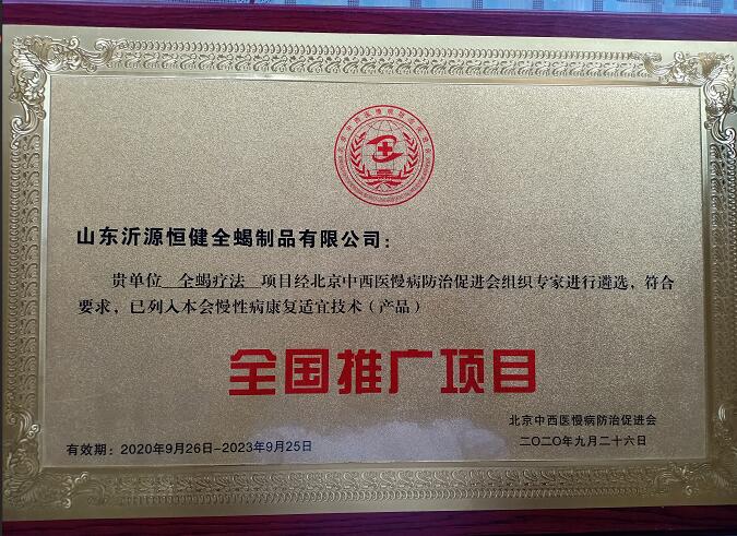 8、“龙蝎酒”选用优质粮食酒为基酒,配伍蝎毒、穿山龙、虫草、大枣、枸杞等多味中药材,精心加工而成,具有祛湿、通络、消炎、止痛、抗病毒、抗衰老等功能,已获国家发明专利。1999年获全国食品博览会金奖,2004年人民大会堂中国农业经济发展论坛既重点项目推广大会指定用酒和重点推荐产品,2008年中央机关老干部康乐文化指导中心指定为共和国老部长、老将军特供酒,2009年12月龙蝎酒被第四界驻华大使年会指定用酒,2010年、2011年商务部中外项目交流会指定用酒,2012年中国品牌质量盛典指定用酒。