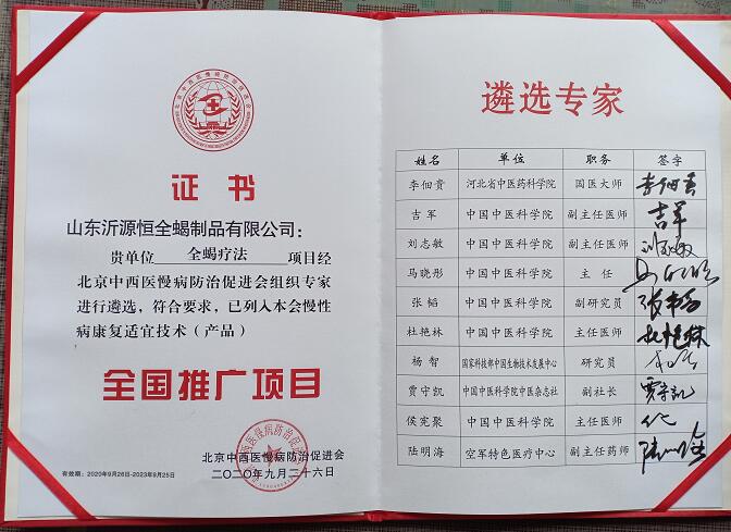 9、蝎精口服液,研发开始于1991年,经过孙纯孝多年的反复试验利用蝎毒配伍多味中药萃取液,选用鲜全蝎,蝎毒、配伍虫草、灵芝等多味名贵中药,采用生物抑菌技术加工而成。蝎精口服液经山东省卫生厅批准(鲁卫食加准字第068号),1994年列为国家级星火计划项目,经山东省产品质量监督检验所检验,富含多种氨基酸,微量元素、维生素等活性物质,对止咳、消炎、通络、镇痉、抗癌、止痛、增强免疫力有着立竿见影的效果,该品有效的保持了全蝎的营养保健医疗作用,可双向调节人体生理机能和免疫力,促进人体细胞活化再生、防病治病、强体健身、抗衰老,属全国首创。