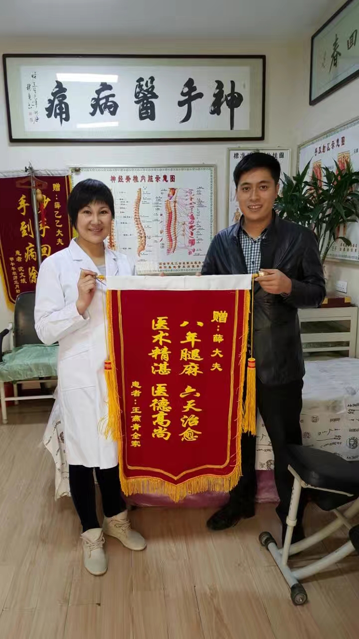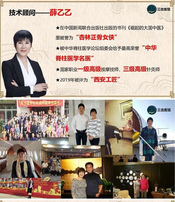 4、薛乙乙从少年起,受父母重托,刻苦学习中医文化,传承正骨绝技,被同行誉为“陕西正骨女侠”,被患者称为“薛神医”,脊柱病的克星。历经30余年的临床经验,通过望、闻、问、切、摸骨诊病,对症治疗,用正骨绝技复位的手法,治疗脊柱病。