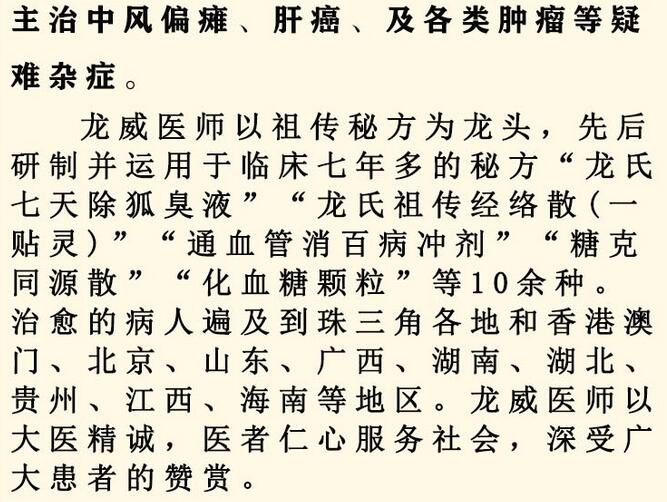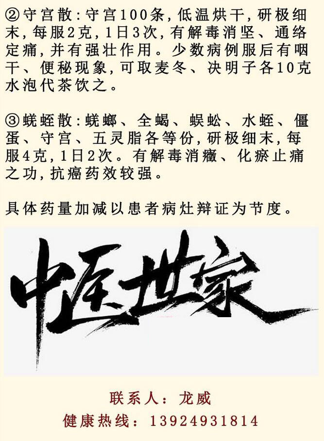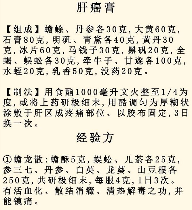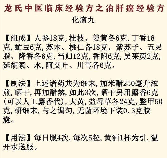 代表成就:研究秘方化瘤丸、肝癌膏、蟾龙散,守宫散、蜣蛭散。