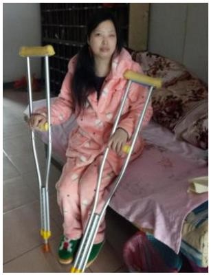 案例三:一上述是浙江温州徐女士 28 岁,不幸患上了双侧股骨头缺血性坏死,经多家大医院医治无显效,最好的办法叫切肢换假肢, 但需上百万巨额。 因承担不起而放弃大医 院的治疗而回家“等死“。瘫倒卧床近三年,疼痛难忍,大 小便不能自理。经人介绍在其母亲的陪同护理下从温州乘飞 机到贵阳转汽车到我处求医,用药 70 天后去拐行走而出院。