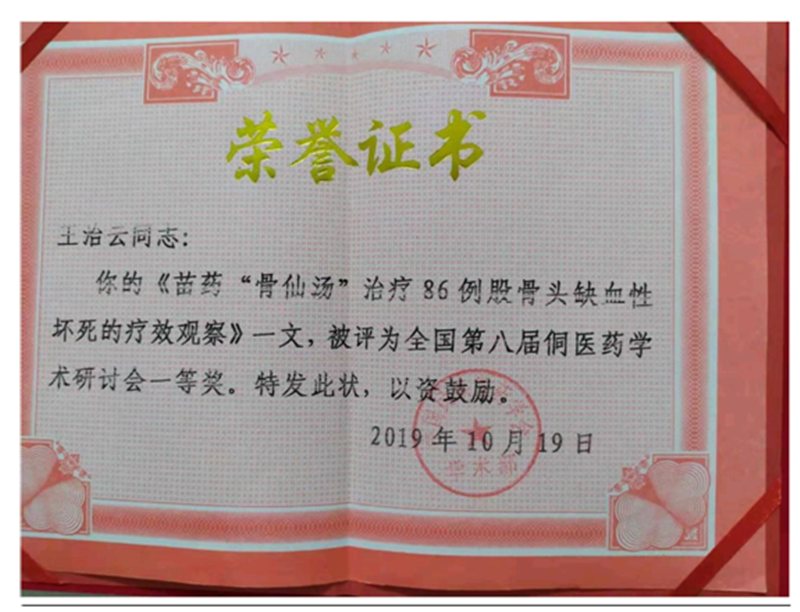 经20多年的临床实践研制出“苗药骨仙汤”,治疗骨结核、股骨头缺血性坏死、骨髓炎、肺结核有显著疗效,在医学界发表论文多篇。并获得好评和奖励。论文著作《中华名医文库》、《千年中医传承与创新》、《中国医药创新与发展》、《盛世之光》、《红色金典》、《中国医者先锋》、《中国优秀共产党人》、《中国领导管理艺术文库》、《时代潮流引领者》、《世界杰出华人先锋榜》、《中流砥柱》、《新版世界名人录》、《健康中国之大医精诚》、《党员故事》。