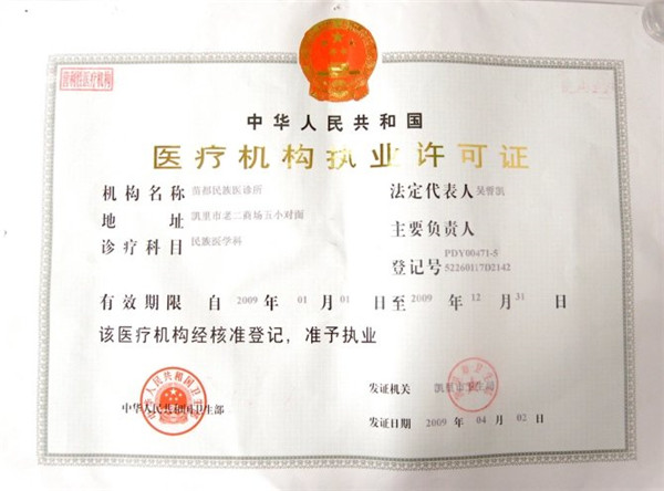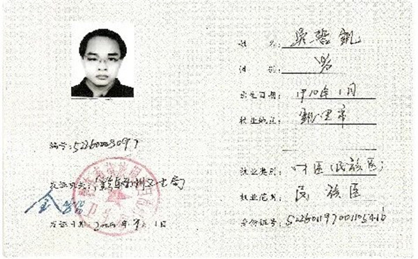 吴誓凯,男,53岁,凯里市人,本科文凭,家传苗医。