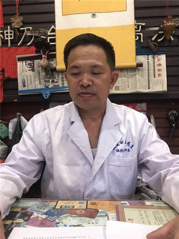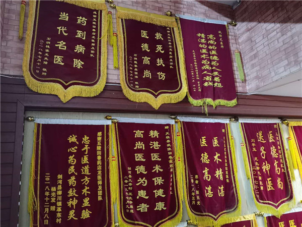 从医这些年患者都是来自五湖四海,医过的病患不难计其数。有病人来时首先用“五龙八脉法”诊断病因,人体的五脏六腑,心、肝、脾、胃(肺)、肾、生、痨、病、死、苦的诊断法诊断开处方达到对症下药,用药必须用理想,才能对患者的病因根治彻底。有刺有毛消毒肿,无刺无消肿毒,空心空底消喘气,从内到外的治疗法,病情无论有多严重先理气,再下药,理应外合双管齐下。我家始祖传中医到本人已有26代之久,我现在用自己的良心和道德去迎接面对病人,虽然每天都是劳心劳神,忙忙碌碌,但为患者治病就是我最大的希望,病人康复对我的工作是最大的欣慰,为了将传统中医文化发扬光大,现已培养学习苗侗中草药徒弟几十名,2018年秋黔东南州剑河县有位患者杨××患有肝脏疾病,来到我武陵回春堂,经本人给他诊断后开方配药,患者连服4个疗程的中草药后得到较为理想的康复效果。患者为表谢意特送一面锦旗。肝病方:配中草药:注未服之前,先拿垂盆草煎熬服用后,在服表火解毒;科:半边莲35g,半支莲35 g,水杨梅40 g,穿心莲20 g,观音茶40 g、银山花20 g,苦参20 g,百家姓等方。
