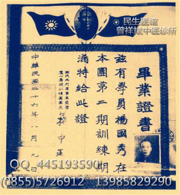 民国三十三年(1944年)被诬陷为“贪污罪”判有期徒刑8年。次年送镇远监狱关押,于狱中常慷慨捐资捐物接济狱友、用自己的医疗技术解除狱中患者疾苦、义务授课等,两年十个月即获释放。出狱后,在镇远县城冲口巷挂起“壶天医寓”牌号行医。镇远解放后在镇远中学任教;1957年被右派;1959年调县医院当中医生并带徒,曾祥斌就是在此时跟随杨老学习的。他们情同父 子,朝夕相处。杨老带徒从深山采药到具体炮制,从药物性味到临证处方,无不悉心教授,平日里更是注重用自己高尚的医德来潜移默化曾祥斌中医诊所位于镇远县舞阳镇灵角寨农贸市场邻(县交警队左前方20米),主要开展以中医中药治疗为特色的诊疗活动:传统中医中药、民医民药治疗、针灸、中草药外治等。本着弘扬医道, 济世惠民”的从医信念,坚持以病人为中心,享有良好的口碑。