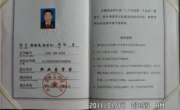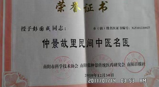 彭国成自幼耳濡目染先父之德泽,深受其熏陶对我国国粹文化命里,地理,中医等学科深感兴趣,高中毕业后既随家父悬壶于丹江北岸淅川县老城一带,后毕业于张仲景国医大学,就职于老城镇石家沟卫生所任所长,在继承中医于命里的基础上本人拜访各地名师潜心研究《易经》《黄帝内经》《本草纲目》《灵樞》等医学专著,经过30余年的反复探讨与实践,2006年荣获河南省百名优秀医生。