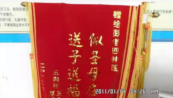 彭国成又根据王先生“舌红苔黄腻,脉沉细滑数”的具体情况,判定其属于肾精不足,湿热下注;为其以先清利湿热为主,降低畸形精子数量,提高精子质量为主,等内症去后,再补益调和五脏为主开具药方,一个月为一个月疗程。三个疗程后,王先生便致电报喜,说妻子已经怀孕。如今宝宝已经四个月大,夫妻俩再次寄送锦旗以表谢意。锦旗之上“医术精湛,送子观音”,几个金光闪闪的大字,代表的不仅是患者发自肺腑的心声,更是对彭国成中医仁心仁术、妙手回春的最真实褒奖。