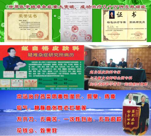 赵自裕老师专家团队特别是在各种顽固性皮肤病《囊肿性痤疮、寻麻疹、湿疹性皮炎、顽固性牛皮癣、咽炎、耳炎、鼻炎、腰椎间盘突出、颈椎病、肩周炎、前列腺炎、老胃病、妇科等久制不愈的怪病方面,包治包好。价格比兄弟医院优惠50%。对、狐臭、疝气、痔瘘、老烂腿等无需手术,包治包好,一次性根除。深受患者和政府认可。专治肝硬化效果显著,对银屑病、牛皮癣、白癜风、痤疮、骨质增生、阳痿、男女性病、老年性瘙痒症、冻疮、疤痕、疙瘩、不育症、脱发、蛇皮人黑色素、口吃、烫伤等有独特治疗方法。