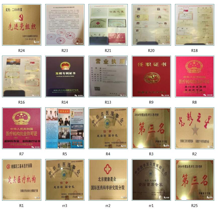 赵自裕老师的专家团队三十多年来治愈率95%以上,得到了很多荣誉;被地方政府和巢湖市聘为“政风行风监督员”、个私协、个私民营企业协会副会长、所在地个私协副会长、优秀、先进党支部,省市县优秀诚信单位、光彩之星、创业之星等称号,赵自裕医师被国家工商局认定为。同时加入《中国民间中医验方集》编委会副主任。我们将不断努力,攻克疑难杂症。为解除患者痛苦,全体医务人员生命不息,战斗不止,做一个对社会有贡献的白衣天使。