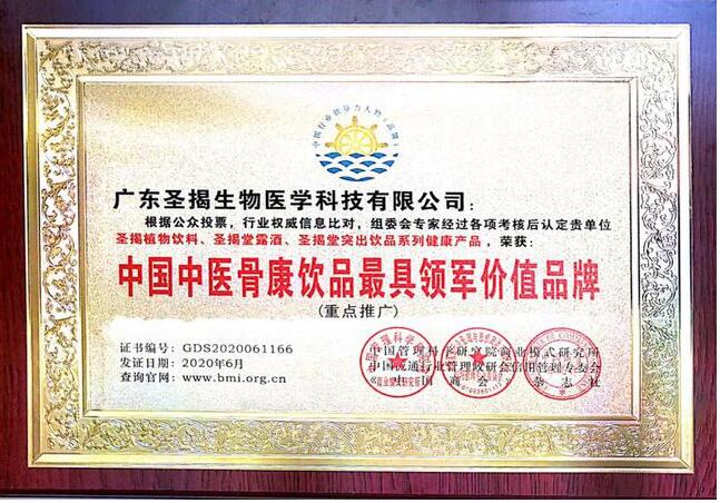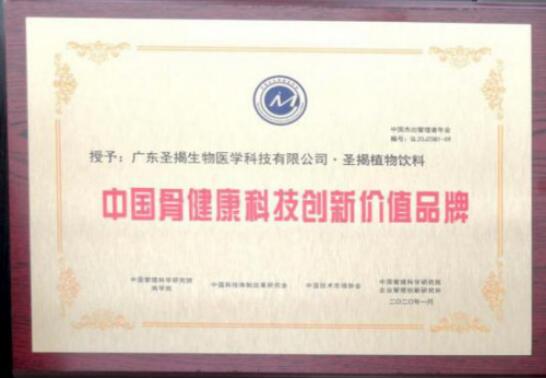 16、2020年1月“圣揭植物饮料”在中国杰出管理者年会被中国管理科学研究院授予“中国骨健康科技创新价值品牌”单位。