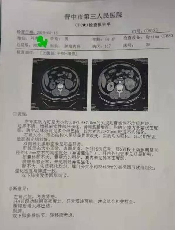 案例一,这是新疆的患者,服用产品二个疗程就能得到康复!部分家属,乌市医学院,新疆兵团十三师医院,要求手术切除。患者本人及妹妹坚决拒绝手术,才得以康复。