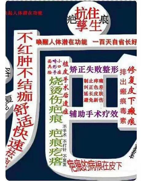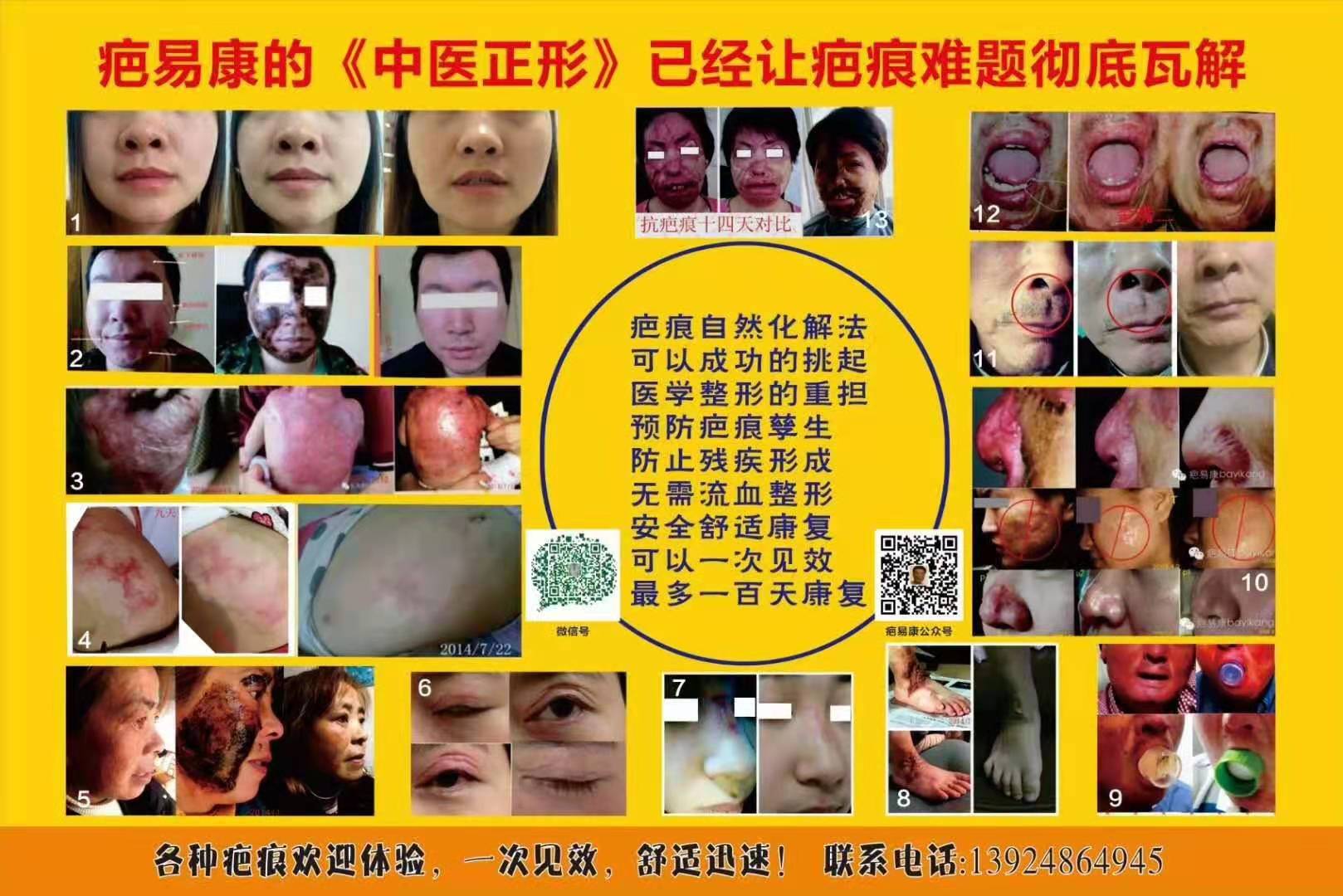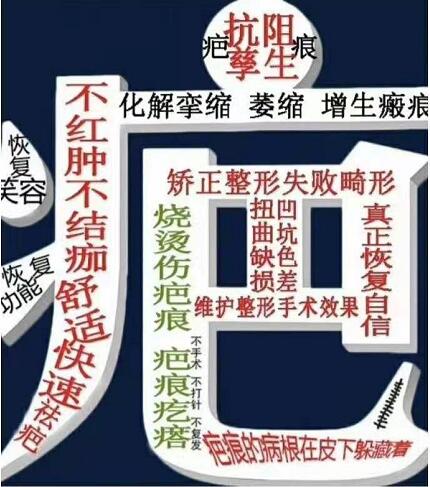 现在的事实是,只需要打破"祛除疤痕″的传统束缚,调动全身气血能量“养好疤痕”,针对疤痕组织的病损部位外敷极少量的消疤药膏再覆盖薄膜一个半小时,配合需要进行一般按揉或者更专业的按摩,一天只需一次,便可以抗住新生疤痕的孳生蔓延,为疤痕“正形”,可以促使人体自动解决已经形成的挛缩、萎缩、增生、变色、变形、凹陷和组织缺损、鼻翻嘴小、功能障碍和植皮后遗症及整形失败的几乎全部难题,不用手术,不用打针吃药,都可以轻松矫正。其结果已经不再是治平,而是恢复与疤痕损伤程度相对应的正常功能。疤痕癌的产生条件被彻底清除!